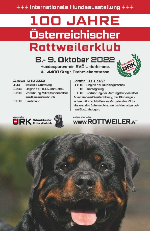 100 Jahre Österreichischer Rottweiler - Österreichischer Rottweiler Klub - Landesgruppe Nord / Wien - Österreich
