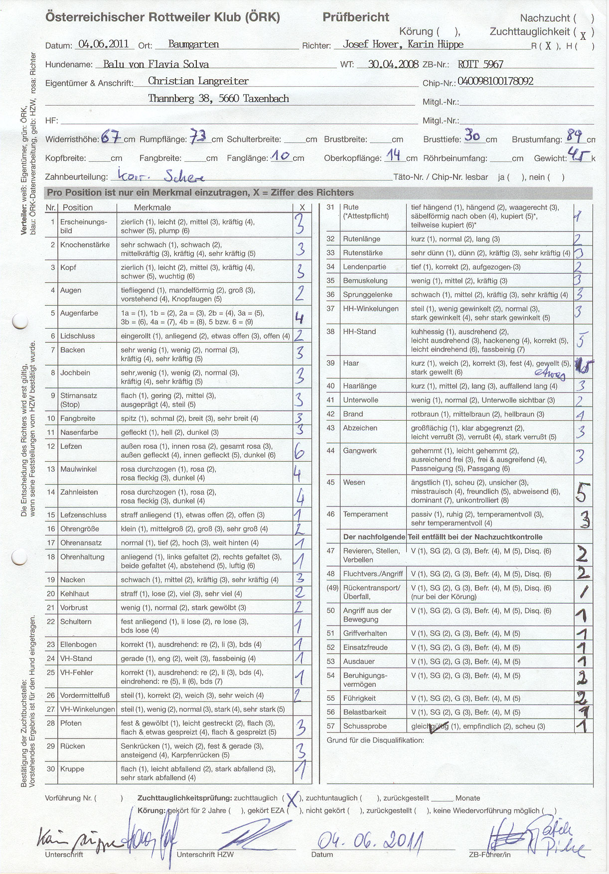 Zuchtauglichkeitsprüfung u. Körung: