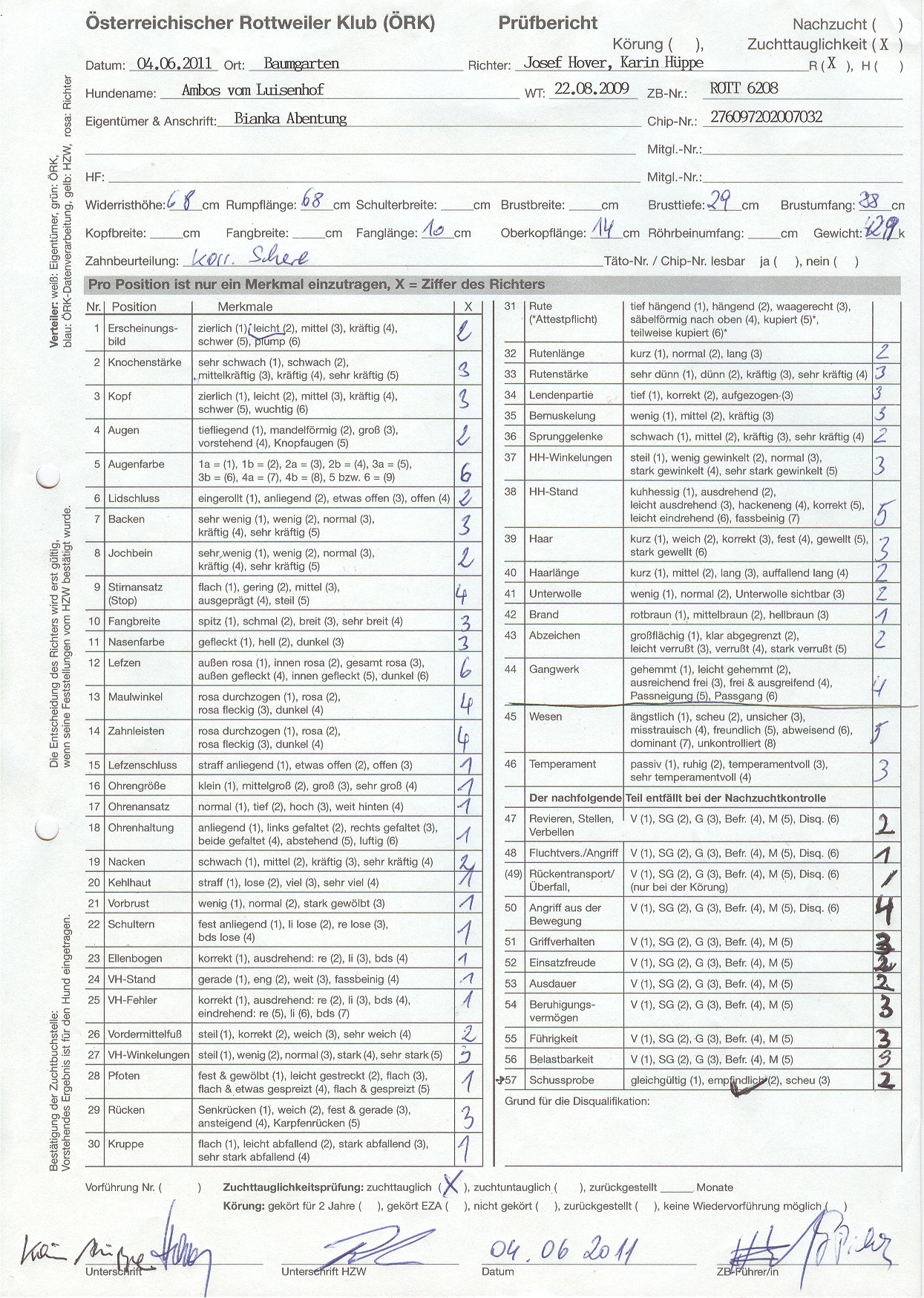 Zuchtauglichkeitsprüfung u. Körung: