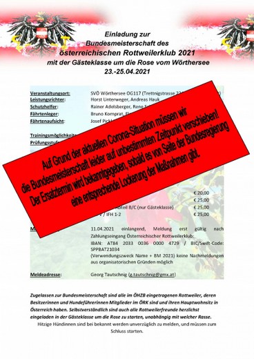 Nach langem Hin und Her sind wir gezwungen unsere Bundesmeisterschaft nun endgültig auf unbestimmt zu verschieben! Trotzdem möchte ich mich sehr herzlich bei Josef Pickl-Hafner und dem Team der SVÖ OG 117